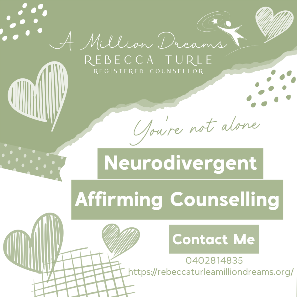 Hi, I’m Rebecca Turle 👋 I’m a counsellor providing neurodivergent affirming support for adults, adolescents, and children living with ADHD, ASD, and complex disabilities, as well as their families and carers.