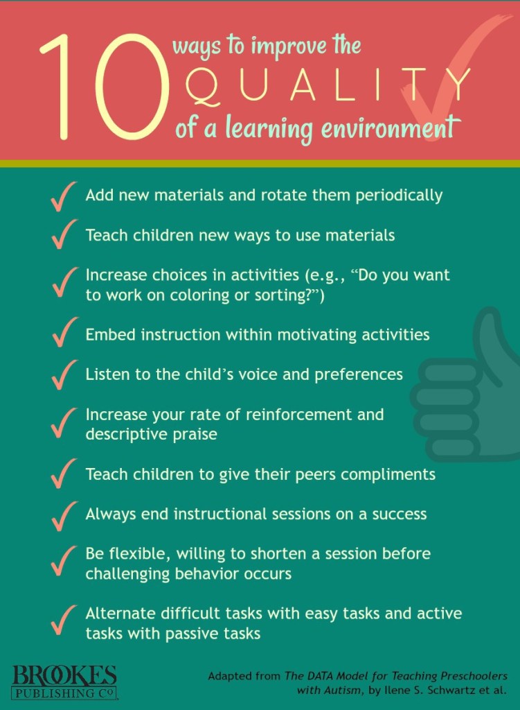 In order for students to get the most out of their education, schools and teachers must make quality classrooms a priority. Classroom environments needs to transcend mainstream education and encompass all students within special education settings, those who have disengaged from school with disruptive behaviour and students who are at risk of school failure.